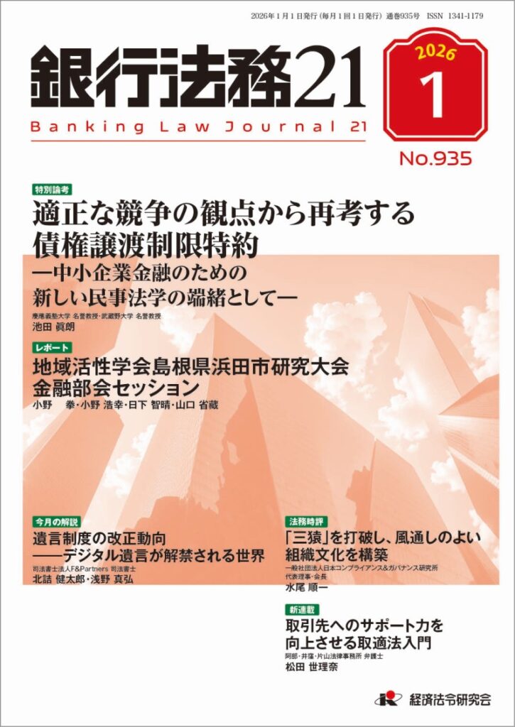 司法書士の北詰健太郎と浅野真弘が「銀行法務21 No.935」(経済法令研究会)に寄稿しました。