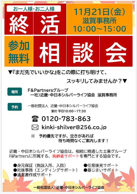 11月21日(金)開催 無料「終活」相談会のご案内